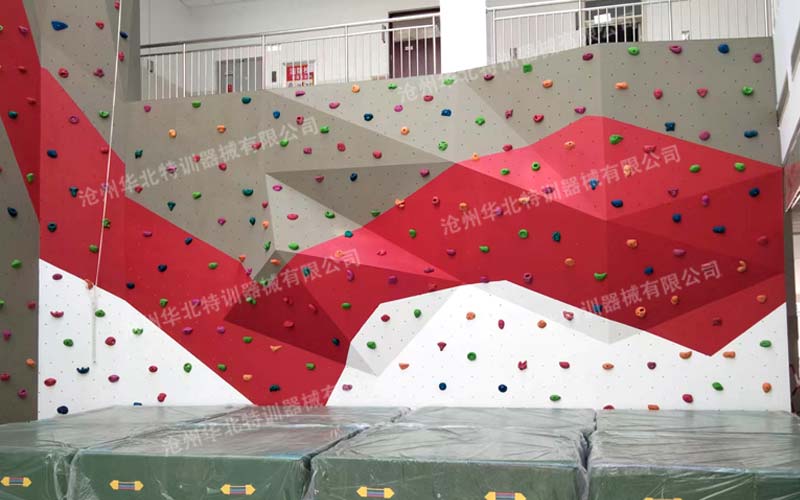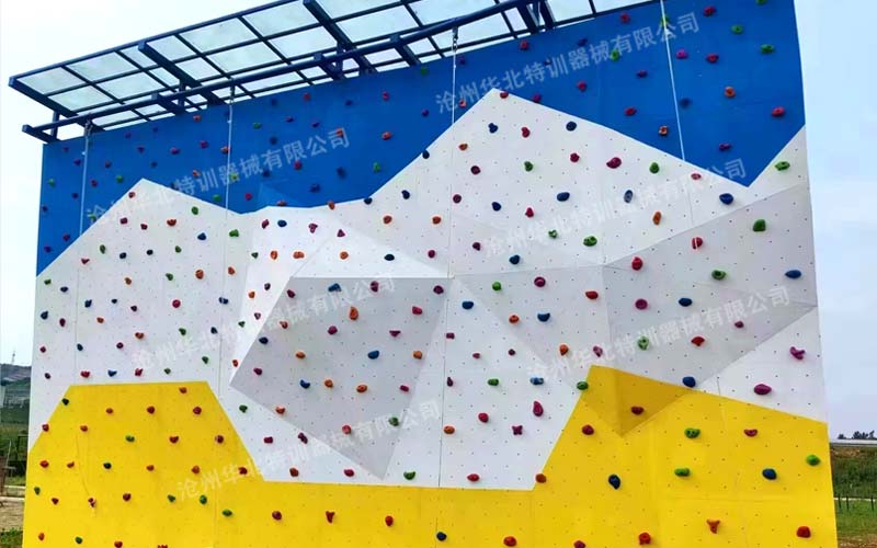 抱石攀巖墻的組成是由巖壁支撐架、攀巖墻面和攀巖支點組成的,巖壁支架是攀巖墻的主體結構,分為獨立結構和有支撐結構,選取硬度較高的鋼材質結構組成,攀巖墻面一般由玻璃鋼或木質攀巖板制成,攀巖支點是攀巖墻的重要配件,它所采用的材料和建造工藝都和抱石攀巖板如出一轍,它的形狀各異,有仿真的,也有卡通的,由不銹鋼螺栓固定在巖板上。