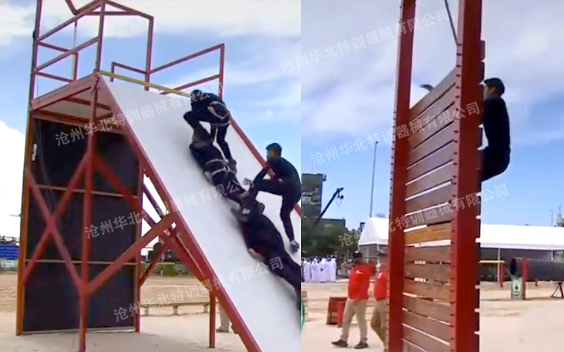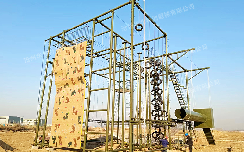 高空反恐綜合訓練架器械常規項目間距6米,總高9米。主要項目包含:單杠、斷橋、天梯、吊索橋等幾十多種單項。可根據場地大小和訓練需求選定項目進行定制。 ...